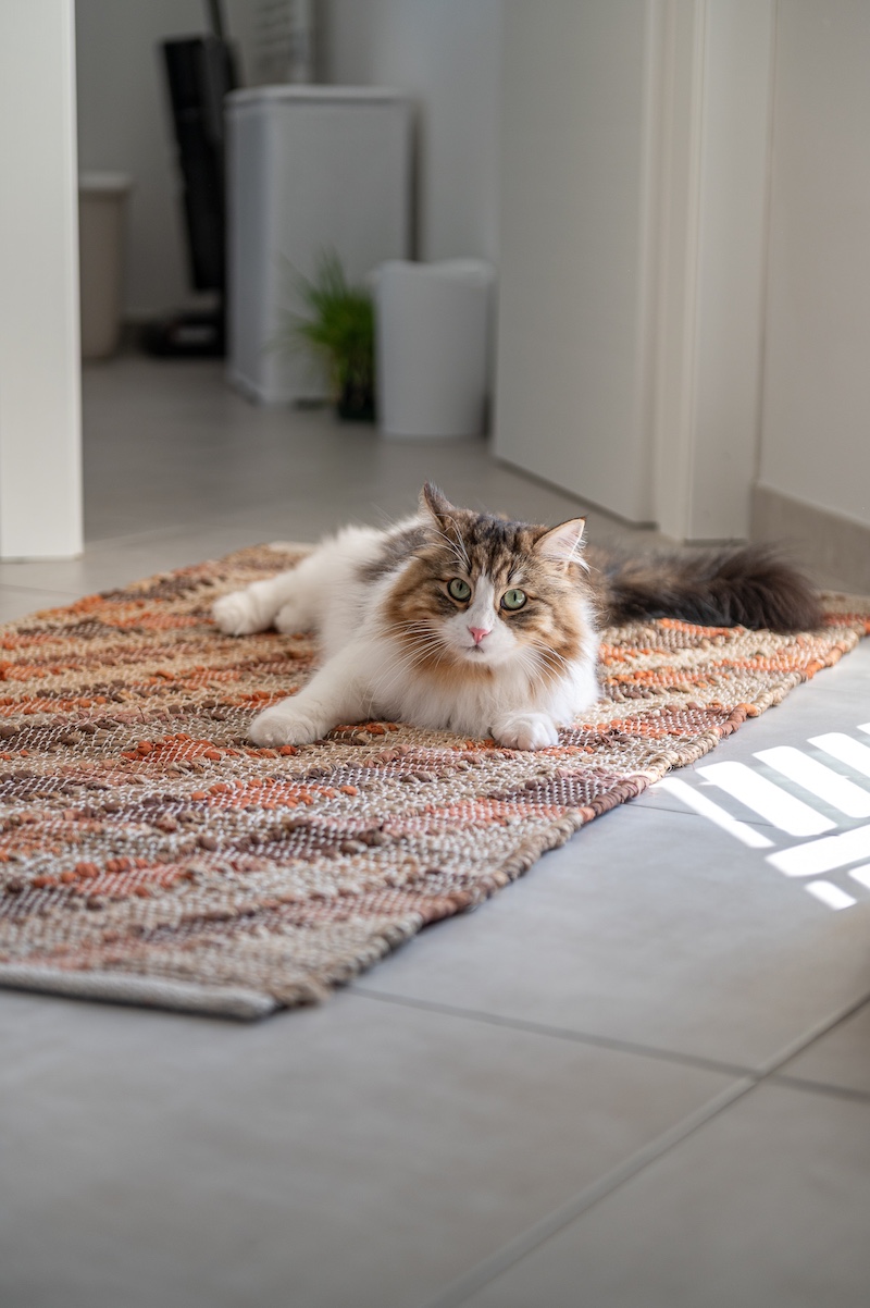 Alessandra e Ivan ci hanno richiamati per la loro nuova casa, ancora al grezzo: l’occasione perfetta per progettare su misura fin dal cantiere. Abbiamo studiato percorsi e illuminazione con grande attenzione (per lei la leggibilità degli spazi è essenziale), scegliendo toni chiari e caldi, legni dogati e cromie della terra per un’atmosfera elegante e accogliente. Il bagno è un piccolo accento di carattere con mobile verde acqua, mentre la lavanderia su misura integra ogni comfort senza rubare spazio.